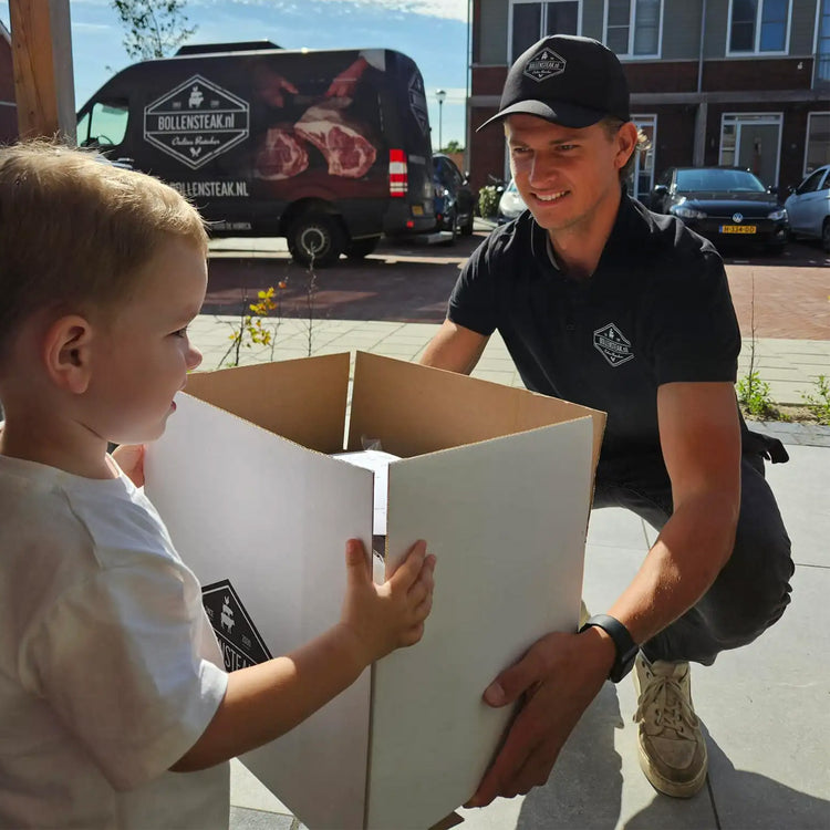 Geen koeriersdienst maar levering via onze eigen gekoelde Bollensteak-bussen. Zo garanderen we kwaliteit én stiptheid. We bezorgen doordeweeks ook ’s avonds, zodat je nooit hoeft te wachten.