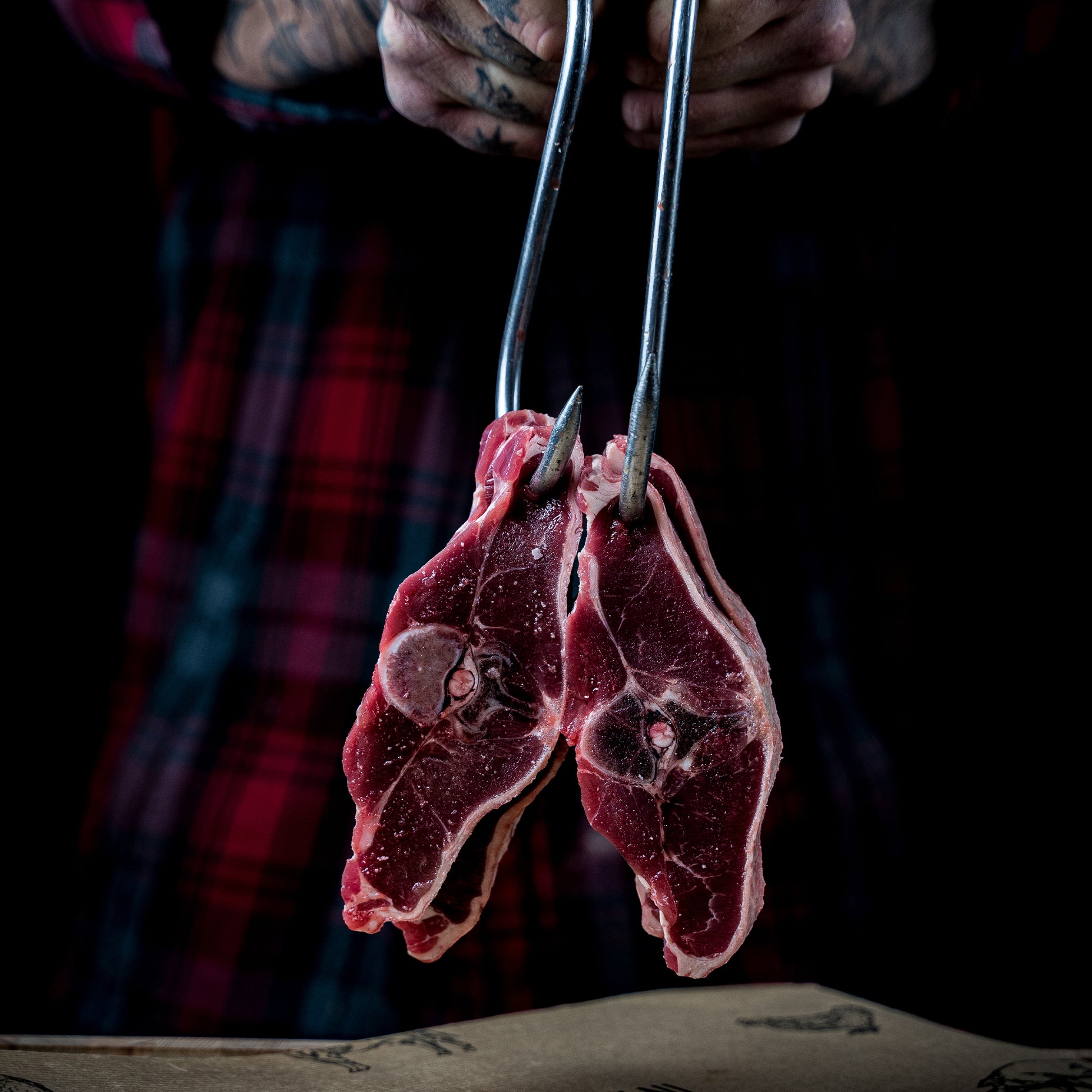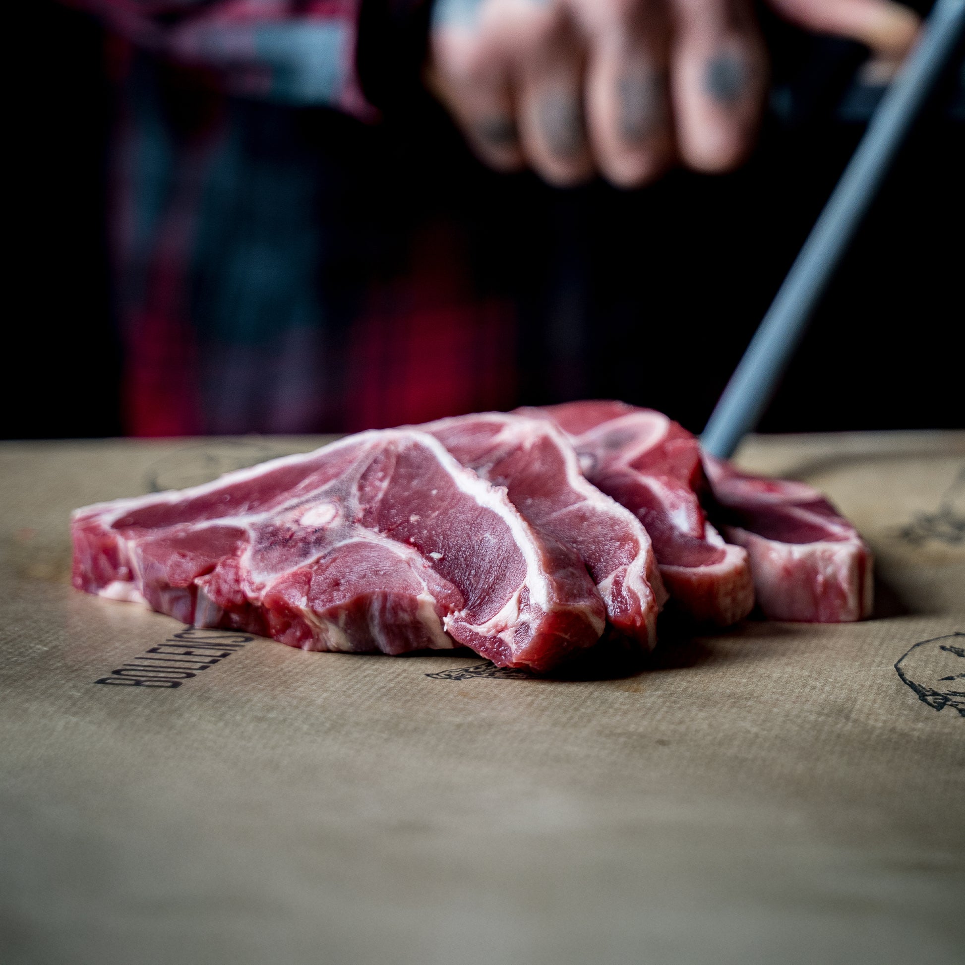 Lamskoteletten gesneden in eigen slagerij